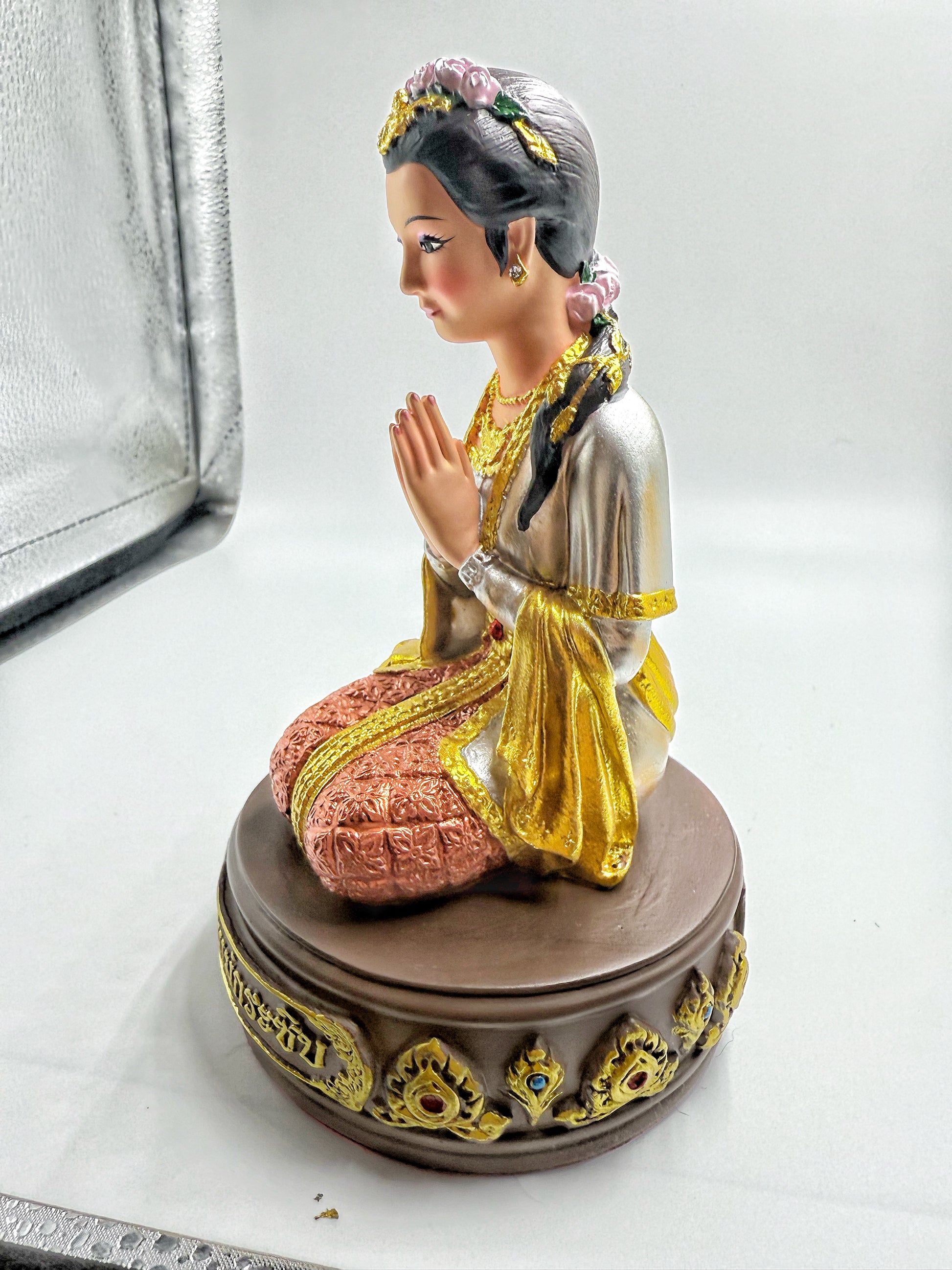 許願女神是泰國信仰中的一位神靈,常被製成佛牌或供奉的雕像,象徵著招財、助人緣、促進感情和事業等功效。她有助於心想事成,願望更快實現。